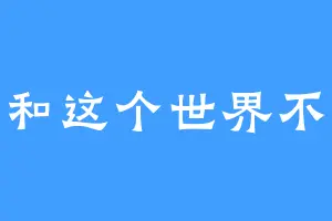 我和这个世界不熟